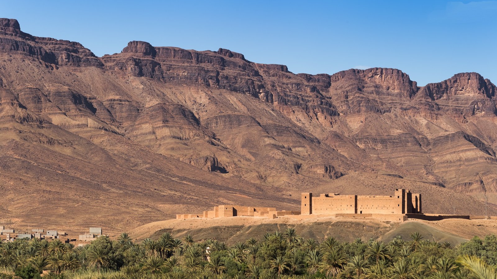 This ancient fortress consists of two sections. The first stands remarkably intact, while the second, smaller section contains fascinating wall paintings. Tamnougalt means "meeting point" in the local language — aptly named for its strategic position atop a hill overlooking the oasis.