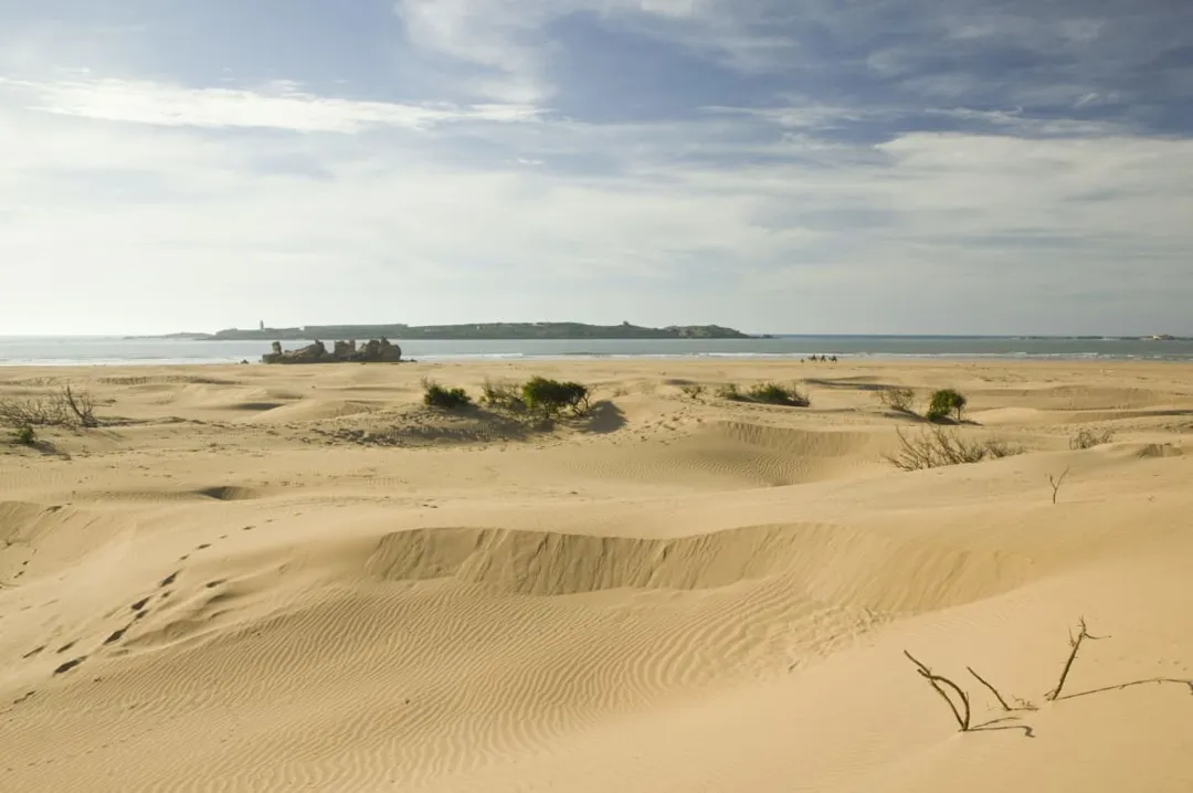 The sweeping bay offers perfect conditions for both relaxation and water sports. Protected by Mogador Island, the beach provides gentler waves than you'd expect from the Atlantic. It's especially popular with kitesurfers, thanks to the consistent trade winds.